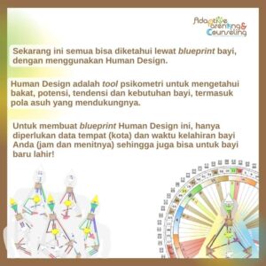 Human Design adalah tool psikometri untuk mengetahui bakat, potensi, tendensi dan kebutuhan bayi, termasuk pola asuh yang mendukungnya.